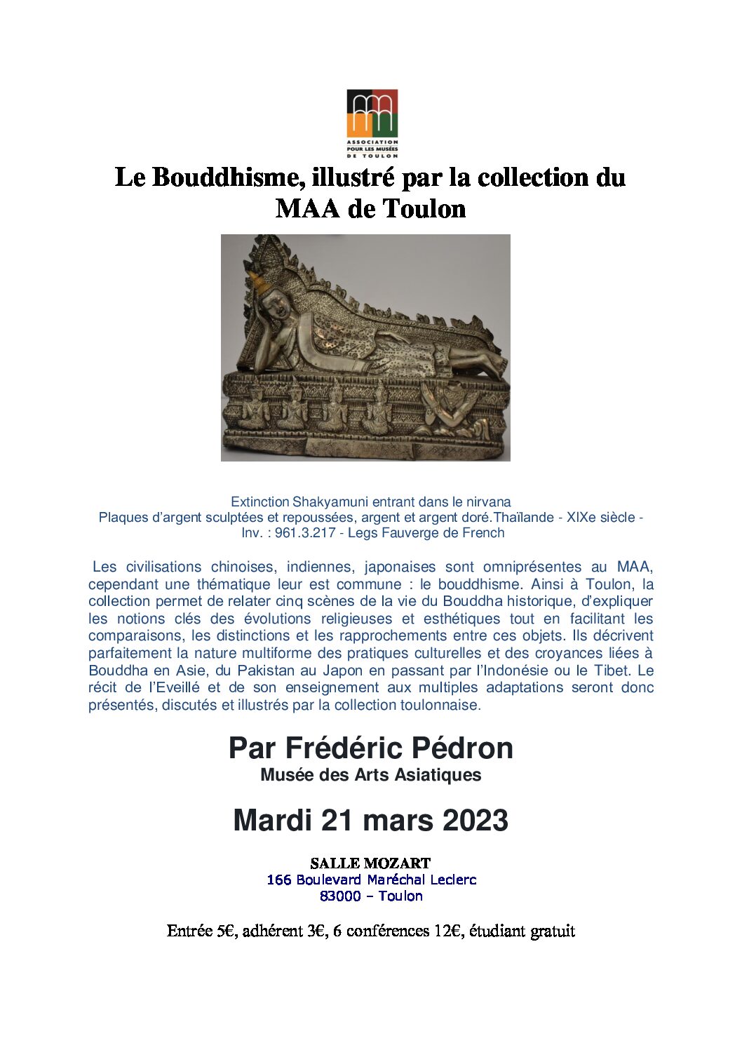 Conférence de Frédéric PEDRON « Le geste bouddhiste à travers les collections du Musée des Arts Asiatiques de Toulon  » (21 Mars 2023)