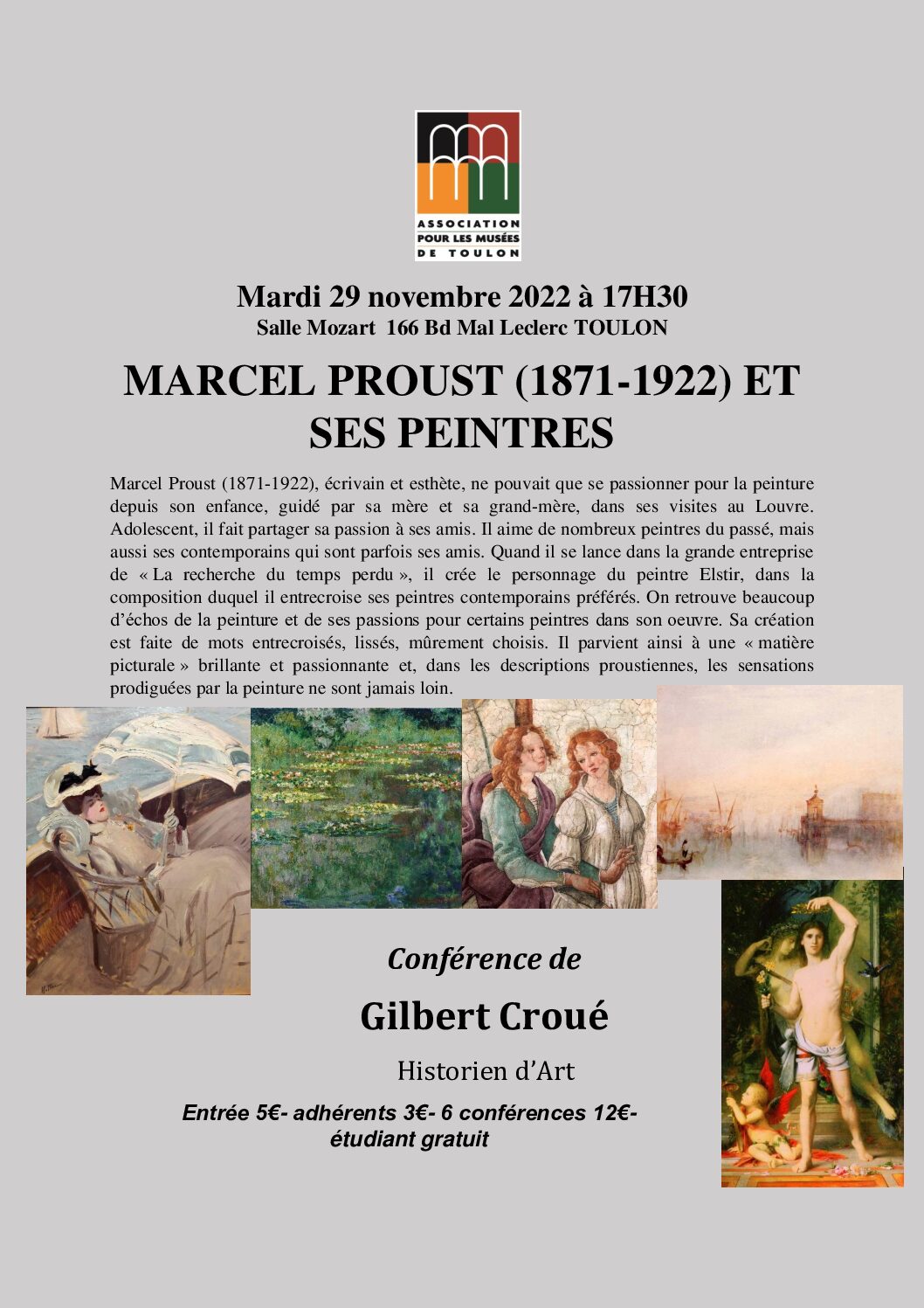 Conférence de Gilbert CROUE « Marcel Proust et ses peintres » (29 Novembre 2022)