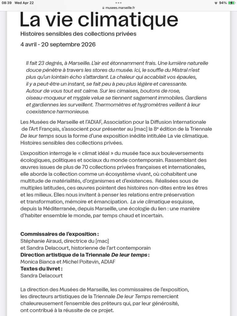 Article dans La Connaissance des Arts qui évoque une exposition dans l’air du temps, avec une belle découverte d’oeuvres pas souvent vus dans des musées: