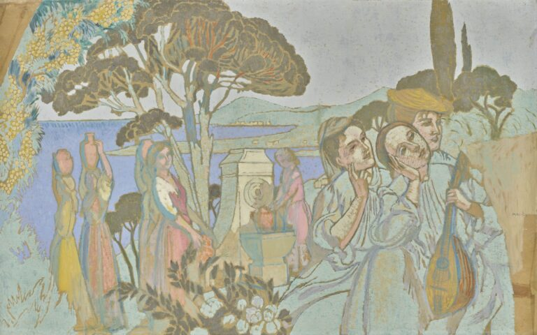 Maurice Denis (1870-1943), La Fontaine, esquisse préparatoire du décor Terre Latine, 1906-1908 Peinture à l’essence sur papier calque collé sur toile, collection particulière © Thomas Hennocque