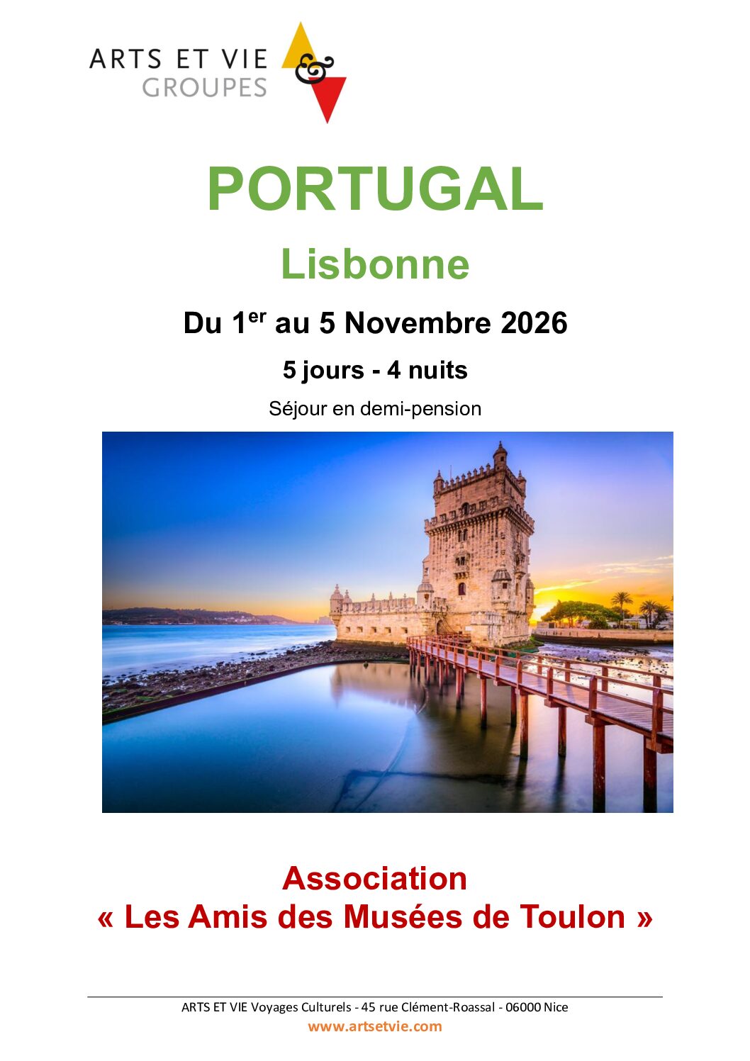 Voyage à Lisbonne du 1er au 5 novembre 2026 organisé par l’AMT et accompagné par Armelle Fallay : encore quelques places de disponibles